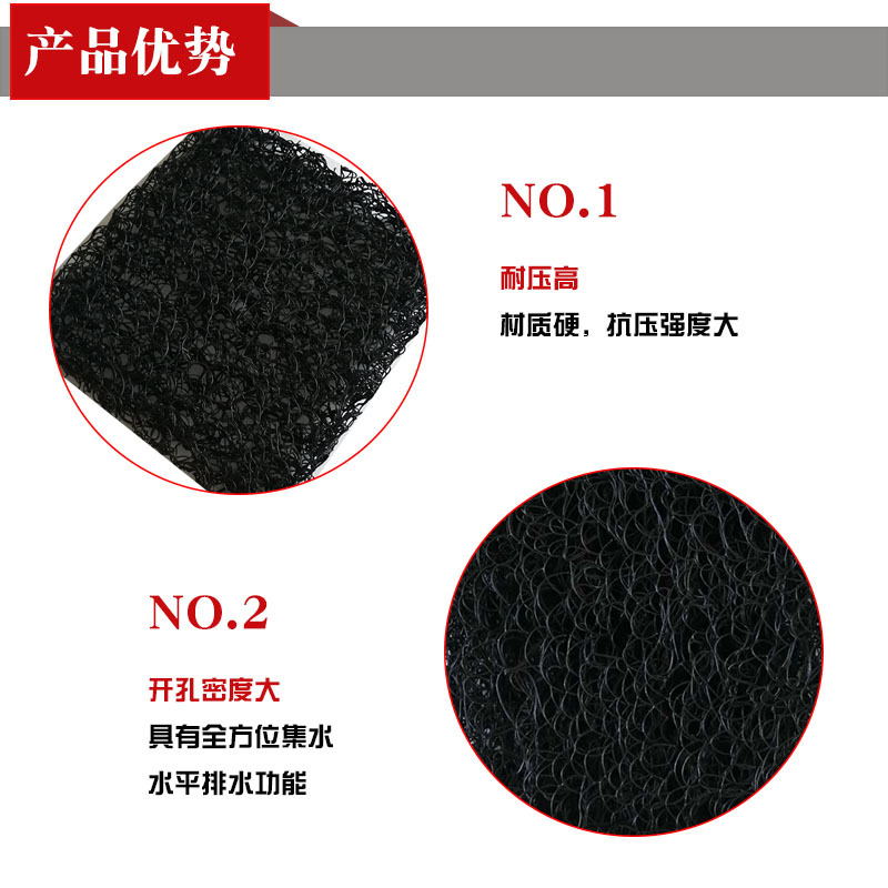 土工席墊與無(wú)紡?fù)凉げ紡?fù)合后,能在掩埋的封閉覆蓋層之下,將匯集滲透過(guò)土壤覆蓋層的雨水或堆場(chǎng)本身排放的污水,利用其獨(dú)特的排水功能,按照工程要求從土工席墊夾層中有序排放,而不會(huì)形成淤堵。因此可以避免因土壤覆蓋層吸水飽和而產(chǎn)生可能的滑動(dòng)問(wèn)題。土工席墊既能排水,同時(shí)也可排放土壤(特別是垃圾廢棄物)中因發(fā)酵產(chǎn)生的沼氣,在垃圾填埋場(chǎng)中應(yīng)用尤其適用。土工席墊與HDPE土工膜結(jié)合應(yīng)用時(shí),同時(shí)能起到很好地保護(hù)HDPE膜不被穿刺的作用。