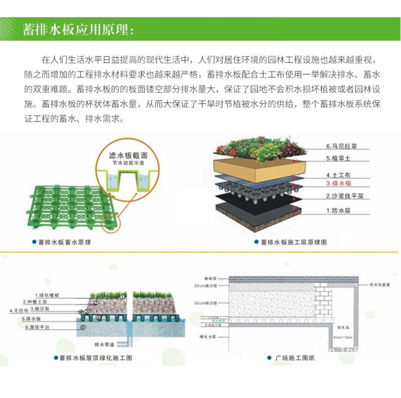 用于屋頂綠化、地下車(chē)頂板綠化、城市廣場(chǎng)、高爾夫球場(chǎng)、運(yùn)動(dòng)場(chǎng)、污水處理廠(chǎng)、公共建筑綠化,園區(qū)內(nèi)道路綠化工程。